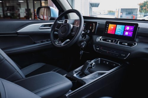 新车车姿举高20mm,最小离地空隙提高至236mm,底盘通过性更强,车姿更威猛、更和谐;低货台规划,货箱离地高度下降10mm,装卸更省力;更有同级仅有原厂货箱照明,不管是清晨上货,仍是晚市装卸运送,都确保货箱内明晰亮堂,装卸货品更安全、更高效。此外,主动挡车型标配10.25英寸高清大屏+倒车印象,领航型更搭载乘用车级车联网体系,支撑智能语音、导航、车载微信、抖音等功用,用车体会全面向乘用车看齐。